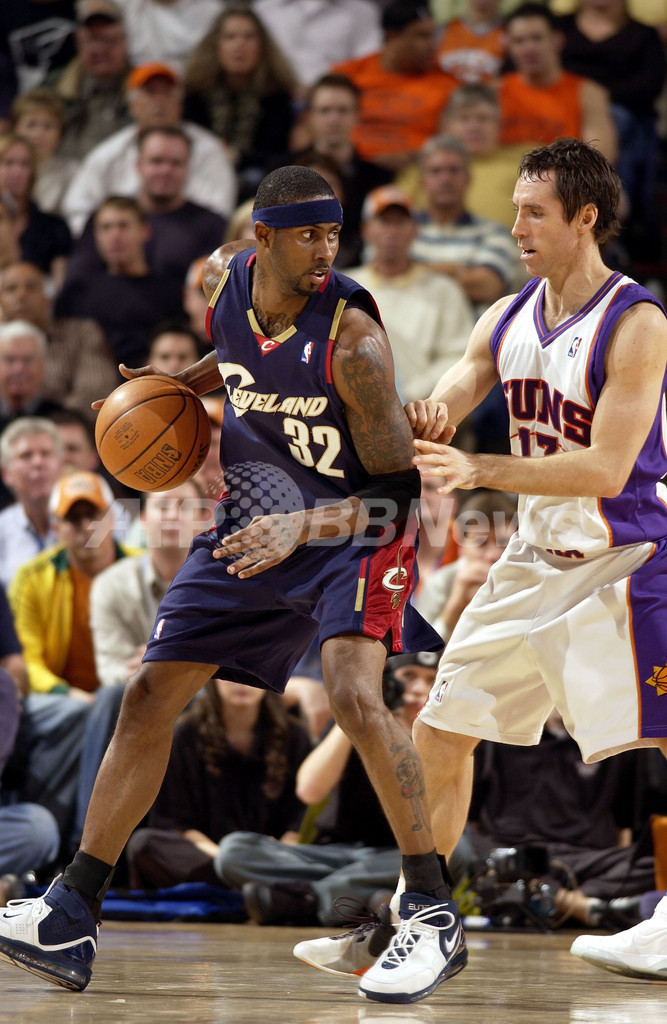 【アリゾナ/米国 11日 AFP】06-07NBA、フェニックス・サンズ(Phoenix Suns)vsクリーブランド・キャバリアーズ(Cleveland Cavaliers)。サンズのショーン・マリオン(Shawn Marion)は、チーム最多の19得点11リバウンドで4試合連続のダブルダブルを記録し、チームの勝利に貢献した。試合は最大32点のリードを奪ったサンズが109-90でキャバリアーズを降し、連勝を8に伸ばした。(c)AFP/Getty Images D. Bernstein