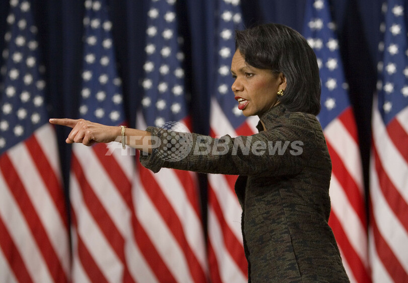 写真は11日、ワシントンD.C.で行われた記者会見でのライス長官。(c)AFP/PAUL J. RICHARDS