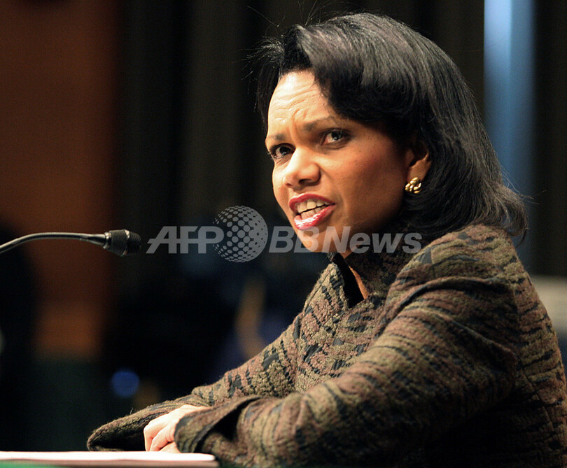 写真は11日、ワシントンD.C.で行われた記者会見でのライス長官。(c)AFP/PAUL J. RICHARDS