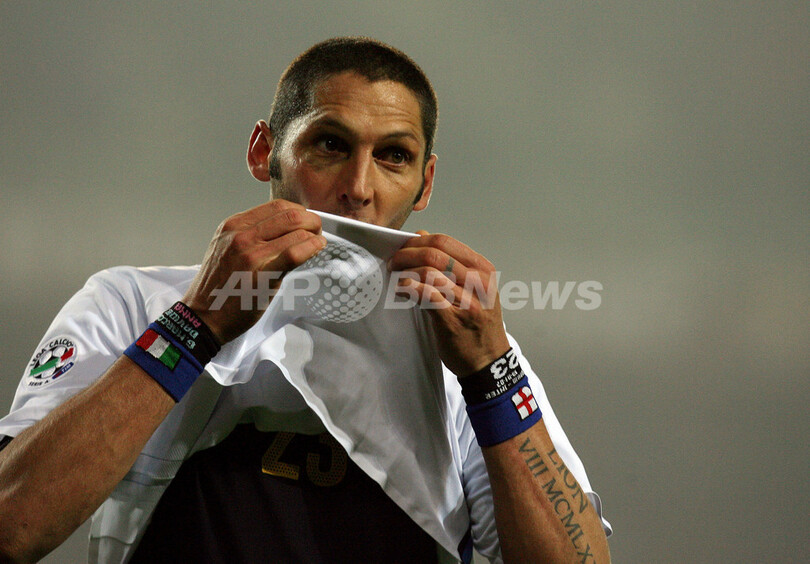 【トリノ/イタリア 13日 AFP】サッカー、イタリア・セリエA・19節、トリノ(Torino FC)vsインテル(Inter Milan)。インテルのマルコ・マテラッツィ(Marco Materazzi)は、後半40分にチーム3点目となるPKを決めてチームの勝利に貢献した。試合はインテルが3-1でトリノを降し12連勝を飾り、2005-06シーズンにローマ(AS Roma)が打ち立てたセリエAの最多連勝記録を更新した。写真は、PKを決めてアピールをするマテラッツィ。(c)AFP/Paco SERINELLI
