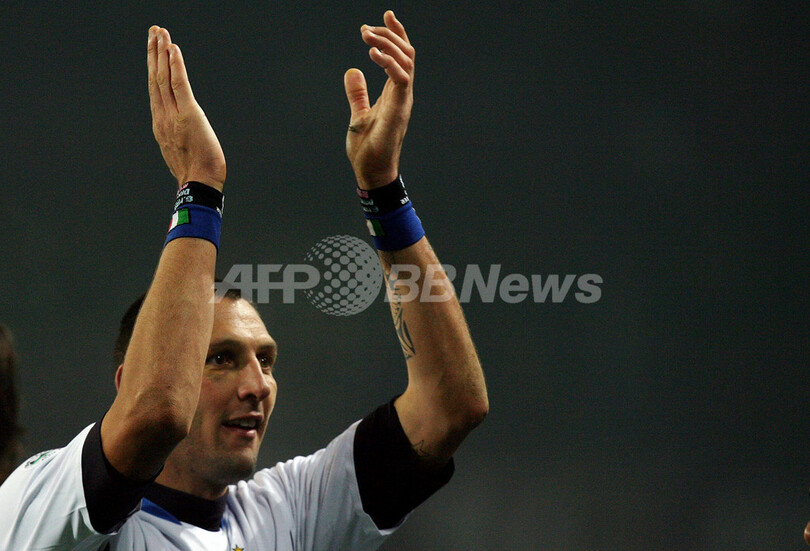 【トリノ/イタリア 13日 AFP】サッカー、イタリア・セリエA・19節、トリノ(Torino FC)vsインテル(Inter Milan)。インテルのマルコ・マテラッツィ(Marco Materazzi)は、後半40分にチーム3点目となるPKを決めてチームの勝利に貢献した。試合はインテルが3-1でトリノを降し12連勝を飾り、2005-06シーズンにローマ(AS Roma)が打ち立てたセリエAの最多連勝記録を更新した。写真は、PKを決めてアピールをするマテラッツィ。(c)AFP/Paco SERINELLI