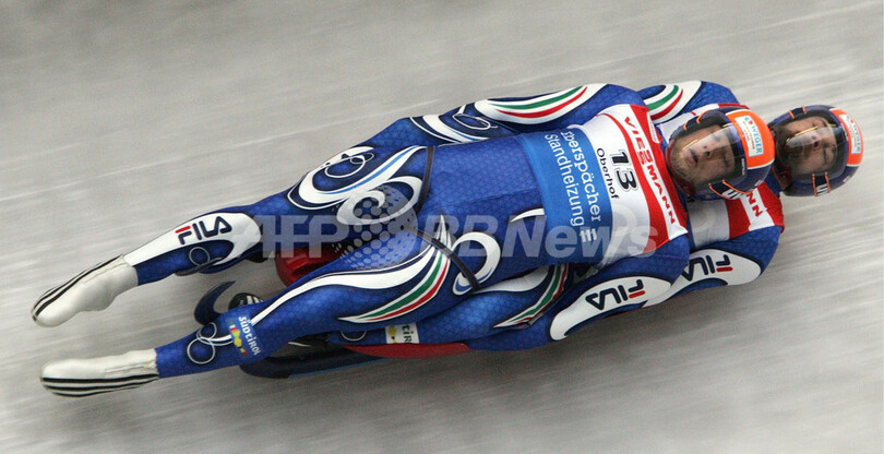 【オーバーホーフ/ドイツ 14日 AFP】リュージュW杯(FIL Luge World Cup)・第6戦、男子・二人乗り。イタリアのクリスチャン・オーベルシュトルツ(Christian Oberstolz)/パトリック・グルーバー(Patrick Gruber)組は、1本目43秒813、2本目43秒560をマークし合計1分27秒373で優勝を果たし、今季3勝目を挙げた。(c)AFP/JENS-ULRICH KOCH