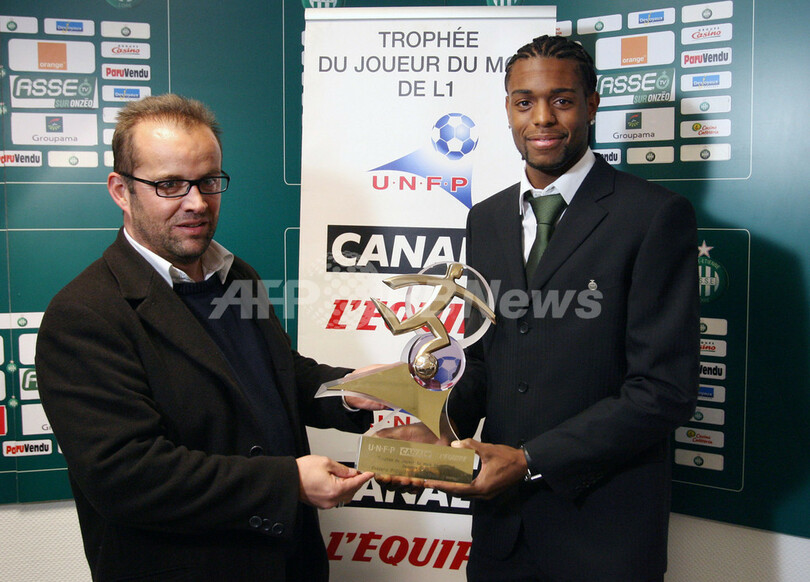 【サンテティエンヌ/フランス 14日 AFP】サッカー、フランス・リーグ1・第20節、サンテティエンヌ(AS Saint-Etienne)vsASモナコ(AS Monaco)。サンテティエンヌのフレデリク・ピキオン(Frederic Piquionne)は、2006年12月の月間最優秀選手に選出され表彰を受けた。試合は0-1でサンテティエンヌが敗れ、シーズン7敗目を喫した。(c)AFP/PHILIPPE MERLE