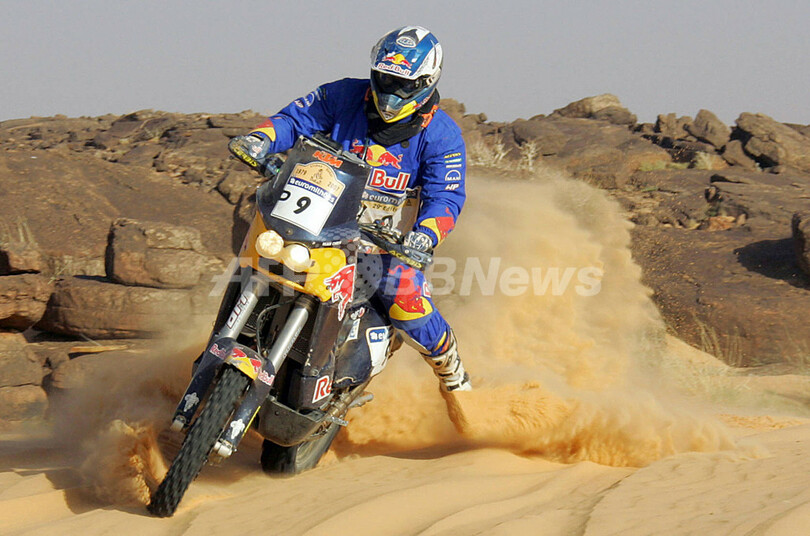 【ティシット/モーリタニア 14日 AFP】ダカールラリー2007(Dakar rally 2007)、二輪部門・第8ステージ(アタールからティシット)、競争区間589キロメートル/総距離626キロメートル)。総合首位からスタートしたKTMのマルク・コマ(Marc Coma、スペイン)は、7時間46分13秒で首位から12分22秒でステージ優勝を飾り、、通算30時間24分47秒で総合首位を守った。(c)AFP/DAMIEN MEYER