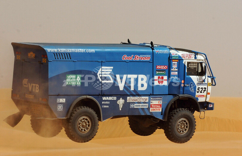 【ティシット/モーリタニア 14日 AFP】ダカールラリー2007(Dakar rally 2007)、トラック部門・第8ステージ(アタールからティシット、競走区間589キロメートル/総距離626キロメートル)。総合首位からスタートしたMANのハンス・ステイシー(Hans Stacey、オランダ)は、8時間58分49秒をマークしてステージ優勝を飾り、通算31時間35分46秒で総合首位をキープした。(c)AFP/DAMIEN MEYER