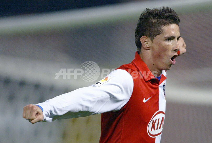 【ヴィーゴ/スペイン 14日 AFP】サッカー、スペイン・リーガエスパニョーラ1部・第18節、セルタ(Celta)vsアトレティコ・マドリード(Atletico de Madrid)。アトレティコ・マドリードのフェルナンド・トーレス(Fernando Torres)は、2ゴール(前半13分、20分)を挙げる活躍でチームの勝利に貢献した。試合はアトレティコ・マドリードが3-1でセルタに勝利し、勝ち点を32に伸ばした。写真は、2点目のゴールを決めて喜びを表すフェルナンド・トーレス。(c)AFP/Miguel RIOPA