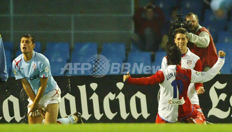 【ヴィーゴ/スペイン 14日 AFP】サッカー、スペイン・リーガエスパニョーラ1部・第18節、セルタ(Celta)vsアトレティコ・マドリード(Atletico de Madrid)。アトレティコ・マドリードのフェルナンド・トーレス(Fernando Torres)は、2ゴール(前半13分、20分)を挙げる活躍でチームの勝利に貢献した。試合はアトレティコ・マドリードが3-1でセルタに勝利し、勝ち点を32に伸ばした。写真は、2点目のゴールを決めて喜びを表すフェルナンド・トーレス。(c)AFP/Miguel RIOPA