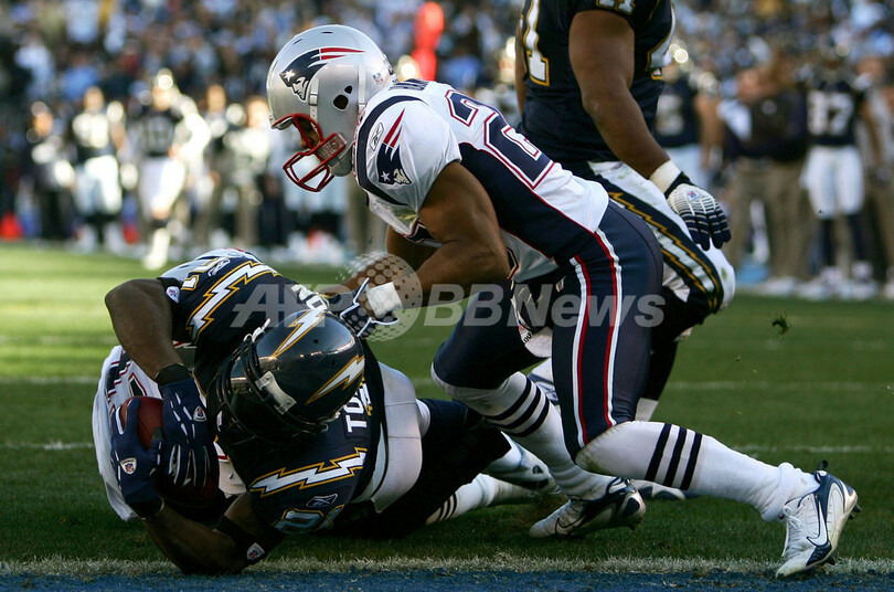 【サンディエゴ/米国 14日 AFP】NFL・プレーオフAFC準決勝、サンディエゴ・チャージャーズ(San Diego Chargers)vsニューイングランド・ペイトリオッツ(New England Patriots)。ペイトリオッツのキッカー、スティーヴン・ゴストコフスキー(Stephen Gostkowski)は、最長50ヤードを含む3本中3本のFGを成功させてチームの勝利に貢献した。試合は、チャージャーズが最大11点差を付けるも、ペイトリオッツが第4Q終盤に逆転して、24-21で勝利しプレーオフ決勝に駒を進めた。ペイトリオッツはAFC決勝でインディアナポリス・コルツ(Indianapolis Colts)と21日に対戦する。写真は、第3Qに34ヤードのFGを蹴るゴストフスキー。(c)AFP/Getty Images Stephen Dunn