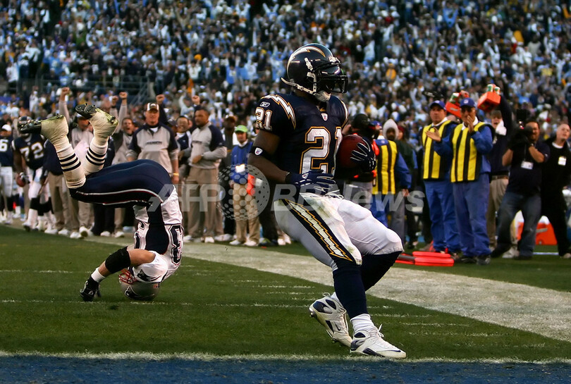 【サンディエゴ/米国 14日 AFP】NFL・プレーオフAFC準決勝、サンディエゴ・チャージャーズ(San Diego Chargers)vsニューイングランド・ペイトリオッツ(New England Patriots)。ペイトリオッツのキッカー、スティーヴン・ゴストコフスキー(Stephen Gostkowski)は、最長50ヤードを含む3本中3本のFGを成功させてチームの勝利に貢献した。試合は、チャージャーズが最大11点差を付けるも、ペイトリオッツが第4Q終盤に逆転して、24-21で勝利しプレーオフ決勝に駒を進めた。ペイトリオッツはAFC決勝でインディアナポリス・コルツ(Indianapolis Colts)と21日に対戦する。写真は、第3Qに34ヤードのFGを蹴るゴストフスキー。(c)AFP/Getty Images Stephen Dunn