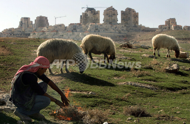 【エルサレム/イスラエル 15日 AFP】イスラエル建設省は15日、ヨルダン川西岸(West Bank)のユダヤ人入植地拡大のため、新たに44戸の建物を建設すると発表した。停滞中の和平プロセス再開を目指して中東歴訪中のコンドリーザ・ライス(Condoleezza Rice)米国務長官は同日、エフド・オルメルト(Ehud Olmert)イスラエル首相との会談を終えたばかりで、入植地拡大により衝撃を受ける形となった。写真は同日、マアレ・アドミム(Maale Adumim)入植地付近の丘で羊の番をする羊飼い。(c)AFP/MENAHEM KAHANA