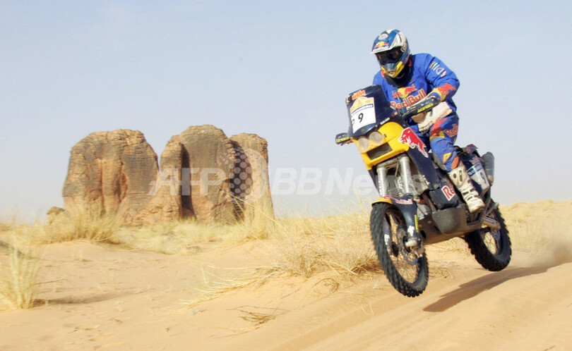 【ネマ/モーリタニア 15日 AFP】ダカールラリー2007(Dakar rally 2007)、二輪部門・第9ステージ(ティシットからネマ、競走区間494キロメートル/総距離497キロメートル)。総合14位からスタートしたKTMのヤニス・ビンターズ(Janis Vinters、ラトビア)は、は、6時間08分51秒でステージ優勝を飾り、3分のペナルティを含む合計タイム40時間12分04秒で総合8位に浮上した。(c)AFP/DAMIEN MEYER