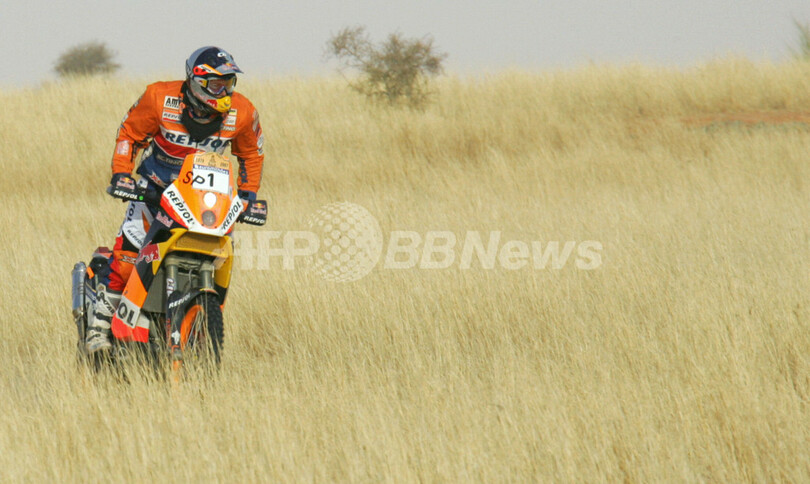 【ネマ/モーリタニア 16日 AFP】ダカールラリー2007(Dakar rally 2007)、二輪部門・第10ステージ(ネマからネマ、競走区間366キロメートル/総距離400キロメートル)。総合7位からスタートしたヤマハ(Yamaha)のエルデル・ロドリゲス(Helder Rodriguez、ポルトガル)は、4時間12分55秒をマークしてステージ優勝を飾り、合計タイム43時間47分26秒で総合6位に順位を上げた。(c)AFP/DAMIEN MEYER