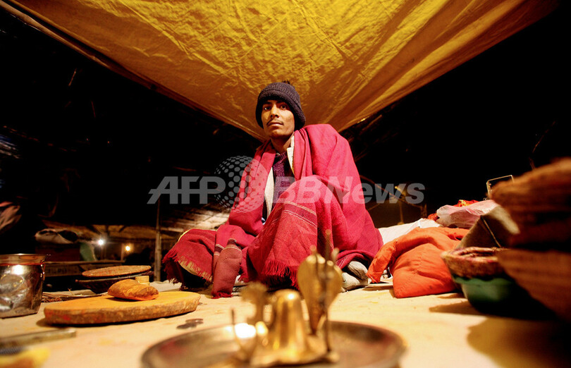 【アラハバード/インド 18日 AFP】ガンジス(Ganges)川、ヤムナ(Yamuna)川、サラスワティ(Saraswati)川が合流するアラハバード(Allahabad)のサンガム(Sangam)河岸で、1月初旬からヒンズー教の祭典「クンブメーラ(Ardh Kumbh Mela、「半分の水差し」の意)」が行われている。