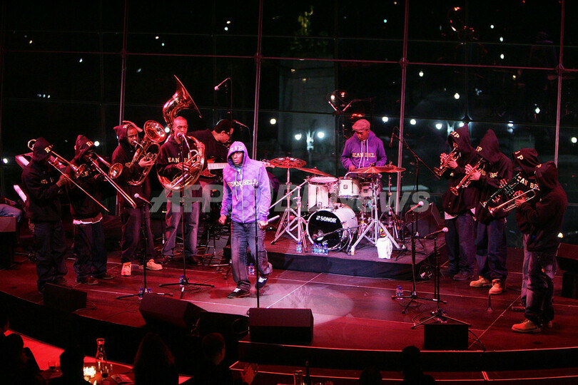 【ニューヨーク/米国 19日 AFP】ジャズ・アット・リンカーンセンター(Jazz at Lincoln Center)が主催するブルース、ロック、ジャズ、カントリー音楽とブロードウェーが融合したコンサート・シリーズ、「アメリカン・ソングブック(American Songbook)」の第9回スプリング・シーズン開催の口火を切るライブに17日、ラッパーのモス・デフ(Mos Def)が出演した。2月24日まで行われる今シーズンには、ハワード・フィッシュマン(Howard Fishman)によるボブ・ディラン(Bob Dylan)の楽曲の演奏やロックバンド、キャレキシコ(Calexico)によるパフォーマンスがある。(c)AFP/Getty Images Scott Gries