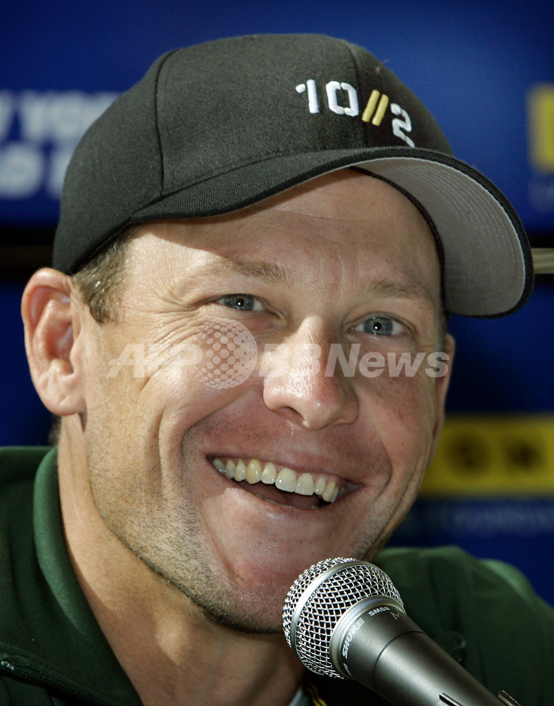 写真は、ニューヨーク・シティマラソン(New York City Marathon)への出場を前に記者会見に臨むアームストロング氏(2006年11月3日撮影)。(c)AFP/Timothy A. CLARY