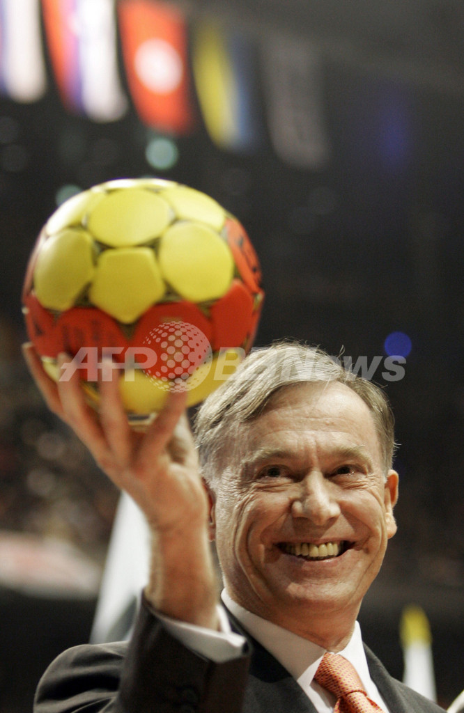 【ベルリン/ドイツ 19日 AFP】ハンドボール、男子ハンドボール世界選手権2007(Men’s Handball World Championship)、予選ラウンド・グループC、ドイツvsブラジル。ドイツのマルクス・バウァー(Markus Baur)は、8本中6本のシュートを決めチームの勝利に貢献した。試合はドイツが27-22でブラジルを降し、開幕初戦を白星で飾った。写真は、シュートを放つドイツのバウァー。(c)AFP/JACQUES DEMARTHON