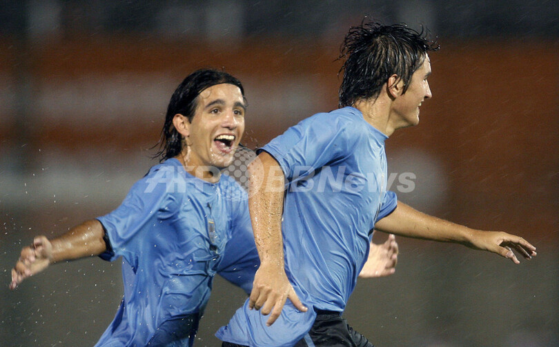 【アスンシオン/パラグアイ 19日 AFP】サッカー、南米ユース選手権(2007 South American Youth Championship)・決勝リーグ、パラグアイvsウルグアイ。ウルグアイのエディソン・カヴァーニ(Edison Cavani)は前半27分にチーム3点目となるゴールを決める。カヴァーニはこのゴールで大会通算5得点目を記録し、得点ランキング首位となった。試合はウルグアイが3-1でパラグアイに勝利し、決勝リーグ初戦を白星で飾った。写真は、チームメートと得点を喜ぶカヴァーニ。(c)AFP/Miguel ROJO