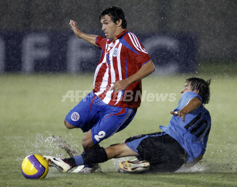 【アスンシオン/パラグアイ 19日 AFP】サッカー、南米ユース選手権(2007 South American Youth Championship)・決勝リーグ、パラグアイvsウルグアイ。ウルグアイのエディソン・カヴァーニ(Edison Cavani)は前半27分にチーム3点目となるゴールを決める。カヴァーニはこのゴールで大会通算5得点目を記録し、得点ランキング首位となった。試合はウルグアイが3-1でパラグアイに勝利し、決勝リーグ初戦を白星で飾った。写真は、チームメートと得点を喜ぶカヴァーニ。(c)AFP/Miguel ROJO