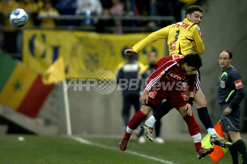 【ソショー/フランス 20日 AFP】サッカー、フランス杯2006-07(Coupe de France 2006-07)・10回戦(1/16決勝)、ソショー(FC Sochaux)vsリヨン・ラ・デュシュール(Lyon La Duchere)。試合はソショーが2-1でリヨン・ラ・デュシュールを降し、ベスト16に駒を進めた。写真は、リヨン・ラ・デュシュールのRachid Benayemとボール競るソショーのラビウ・アフォラビ(Rabiu Afolabi、右)。(c)AFP/JEFF PACHOUD