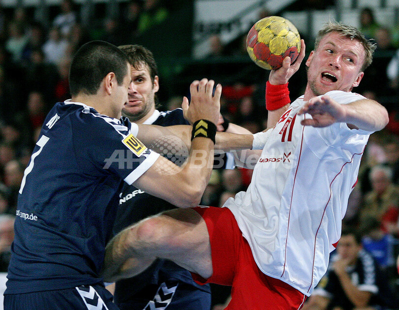 【ハレ/ドイツ 20日 AFP】ハンドボール、男子ハンドボール世界選手権2007(Men’s Handball World Championship)、予選ラウンド・グループC、ポーランドvsアルゼンチン。試合は、ポーランドが29-15でアルゼンチンに勝利、初戦を白星で飾った。写真は、ポーランドのGK、Slawomir Szmal(左)と歓喜して抱き合うMichal Jurecki。(c)AFP/RONNY HARTMANN