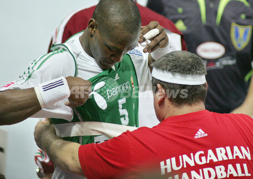 【キール/ドイツ 20日 AFP】ハンドボール、男子ハンドボール世界選手権2007(Men’s Handball World Championship)、予選ラウンド・グループE、デンマークvsハンガリー。ハンガリーのTamas Mocsai(中央)はこの試合、4得点を決めてチームに貢献した。試合はハンガリーが30-29でデンマークに僅差で勝利し、初戦を白星で飾った。(c)AFP/ATTILA KISBENEDEK