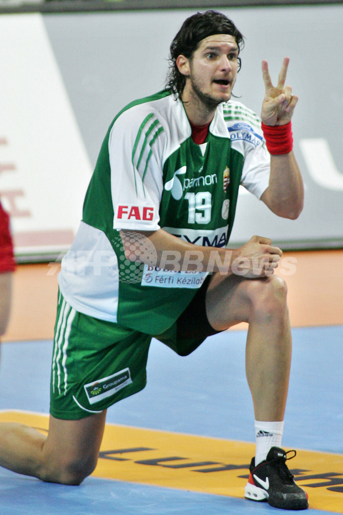 【キール/ドイツ 20日 AFP】ハンドボール、男子ハンドボール世界選手権2007(Men’s Handball World Championship)、予選ラウンド・グループE、デンマークvsハンガリー。ハンガリーのTamas Mocsai(中央)はこの試合、4得点を決めてチームに貢献した。試合はハンガリーが30-29でデンマークに僅差で勝利し、初戦を白星で飾った。(c)AFP/ATTILA KISBENEDEK