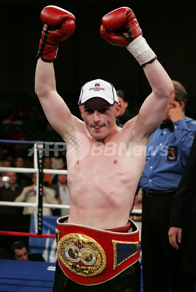 【ラスベガス/米国 20日 AFP】ボクシングIBF国際ウェルター級タイトルマッチ12回戦。英国のマシュー・ハットン(Matthew Hatton)は、米国のFrank Houghtalingと対戦。ハットンは第7ラウンド終了後にHoughtalingが左目の上を切って試合続行不可能となった為、TKO勝利で王座決定戦を制し、タイトルを獲得した。(c)AFP/Getty Images John Gichigi