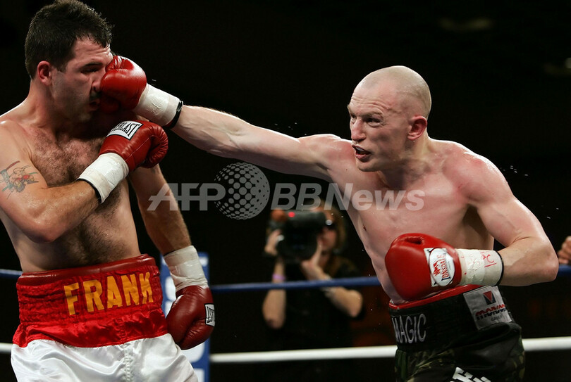 【ラスベガス/米国 20日 AFP】ボクシングIBF国際ウェルター級タイトルマッチ12回戦。英国のマシュー・ハットン(Matthew Hatton)は、米国のFrank Houghtalingと対戦。ハットンは第7ラウンド終了後にHoughtalingが左目の上を切って試合続行不可能となった為、TKO勝利で王座決定戦を制し、タイトルを獲得した。(c)AFP/Getty Images John Gichigi