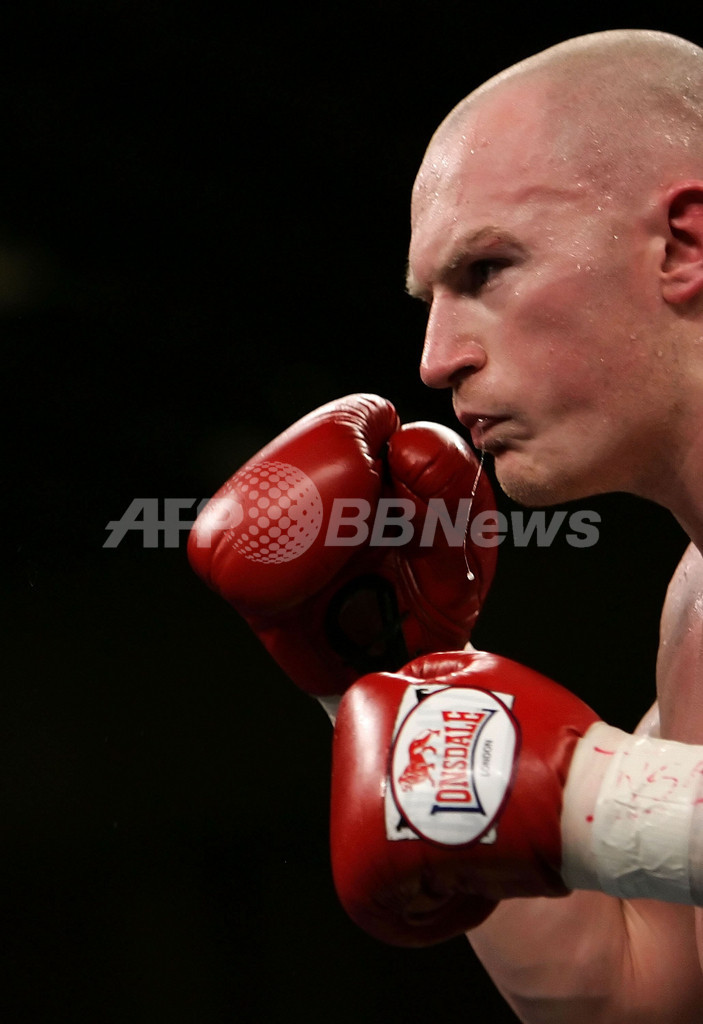 【ラスベガス/米国 20日 AFP】ボクシングIBF国際ウェルター級タイトルマッチ12回戦。英国のマシュー・ハットン(Matthew Hatton)は、米国のFrank Houghtalingと対戦。ハットンは第7ラウンド終了後にHoughtalingが左目の上を切って試合続行不可能となった為、TKO勝利で王座決定戦を制し、タイトルを獲得した。(c)AFP/Getty Images John Gichigi