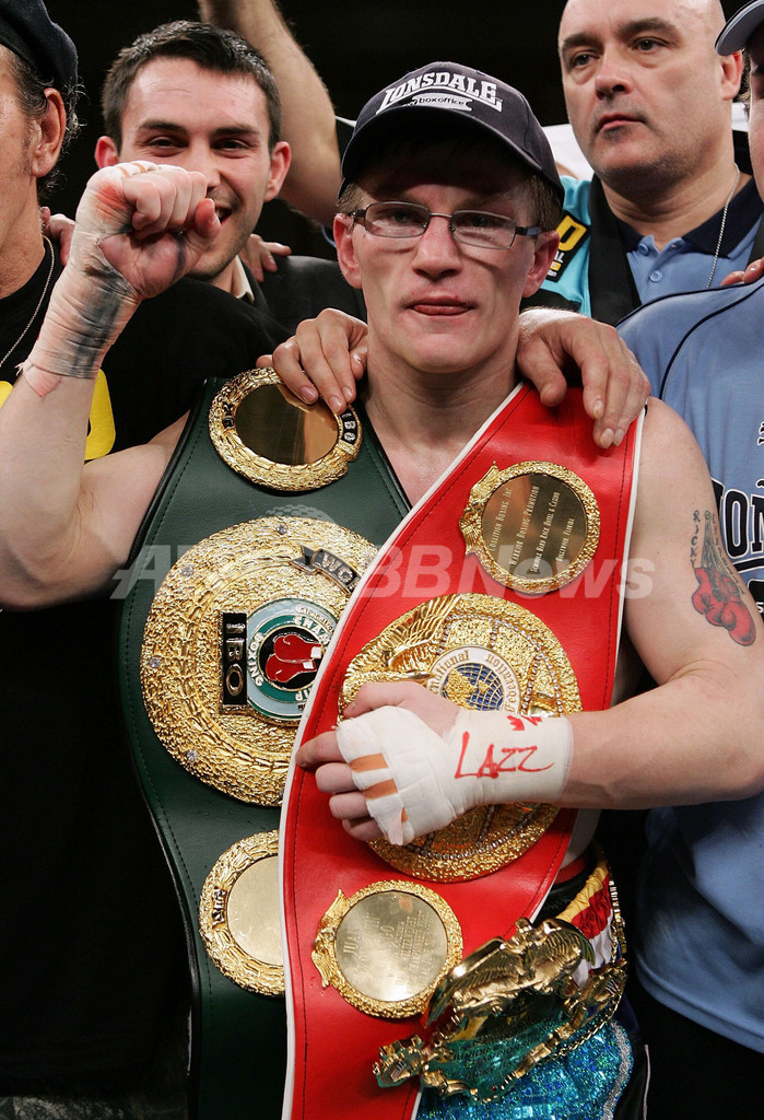 【ラスベガス/米国 20日 AFP】ボクシング、IBF世界ジュニアウェルター級タイトル戦/IBO世界ライトウェルター級暫定王者決定戦。IBF同級6位/前IBF同級王者のリッキー・ハットン(Ricky Hatton、英国)は、現IBF同級暫定王者のフアン・ウランゴ(Juan Urango、コロンビア)と対戦。ハットンは12ラウンド判定の末に3-0(119-109、119-109、119-109)でウランゴを破ってデビューからの連勝を42に伸ばし、王者に返り咲いた。(c)AFP/Getty Images Ethan Miller