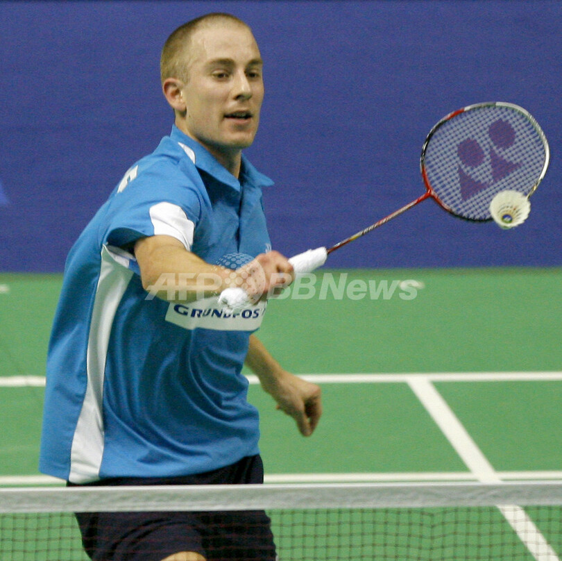 【クアラルンプール/マレーシア 21日 AFP】バドミントン、スーパーシリーズ(Super Series)第1戦、マレーシアオープン2007(Malaysia Open 2007)・男子シングルス・決勝。デンマークのピーター・ゲード(Peter Gade)は、中国のバオ・チュンライ(Bao Chunlai)と対戦。ゲードはセットカウント2-1(21-15、17-21、21-14)で勝利を収め、優勝を飾った。(c)AFP/TENGKU BAHAR