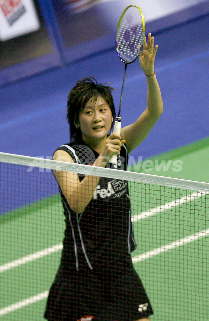 【クアラルンプール/マレーシア 21日 AFP】バドミントン、スーパーシリーズ(Super Series)第1戦、マレーシアオープン2007(Malaysia Open 2007)・女子シングルス・決勝。中国のズー・リン(Zhu Lin)は、マレーシアのMew Choo Wongと対戦。ズーはセットカウント2-0(21-15、21-12)のストレートでWongを降し、全試合ストレート勝ちでの完全優勝を飾った。(c)AFP/TENGKU BAHAR