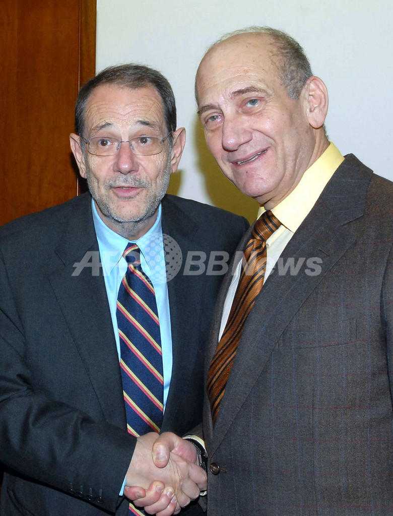 【エルサレム/イスラエル 22日 AFP】欧州連合(EU)のハビエル・ソラナ(Javier Solana)共通外交・安全保障上級代表は21日、エルサレム(Jerusalem)でエフド・オルメルト(Ehud Olmert)首相と会談した。イスラエル訪問に先立ちヨルダンを訪れたソラナ代表はアンマン(Amman)での記者会見で、イスラエルとパレスチナ自治区の問題について、最近会談した両国の関係者らの間には和平交渉再開のための「政治的意志」があったと語った。写真は同日、オルメルト首相と会談するEUのソラナ代表。(c)AFP/MOSHE MILLNER