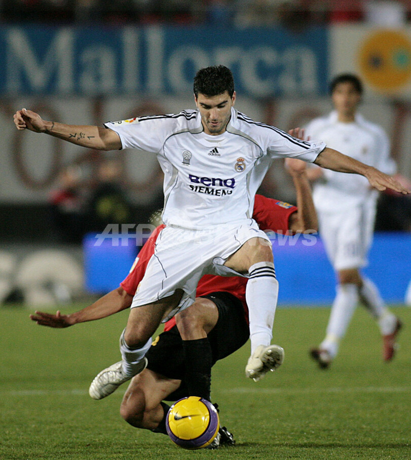 【マドリード/スペイン 21日 AFP】サッカー、スペイン・リーガエスパニョーラ1部・第19節、マジョルカ(Mallorca)vsレアル・マドリード(Real Madrid)。試合はアウェーのレアル・マドリードが後半33分にホセ・アントニオ・レイェス(Jose Antonio Reyes)のゴールで先制し、1-0でマジョルカを降しリーグ2連勝で勝ち点を38に伸ばした。写真は、ゴールを喜ぶレアル・マドリードの選手たち。(c)AFP/Jaime REINA