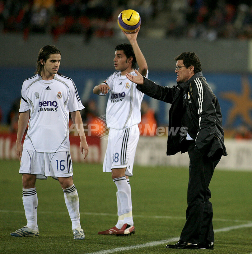 【マドリード/スペイン 21日 AFP】サッカー、スペイン・リーガエスパニョーラ1部・第19節、マジョルカ(Mallorca)vsレアル・マドリード(Real Madrid)。試合はアウェーのレアル・マドリードが後半33分にホセ・アントニオ・レイェス(Jose Antonio Reyes)のゴールで先制し、1-0でマジョルカを降しリーグ2連勝で勝ち点を38に伸ばした。写真は、ゴールを喜ぶレアル・マドリードの選手たち。(c)AFP/Jaime REINA