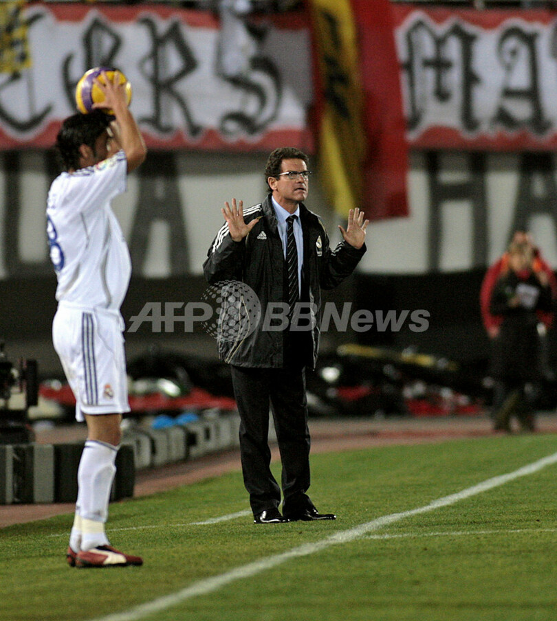 【マドリード/スペイン 21日 AFP】サッカー、スペイン・リーガエスパニョーラ1部・第19節、マジョルカ(Mallorca)vsレアル・マドリード(Real Madrid)。試合はアウェーのレアル・マドリードが後半33分にホセ・アントニオ・レイェス(Jose Antonio Reyes)のゴールで先制し、1-0でマジョルカを降しリーグ2連勝で勝ち点を38に伸ばした。写真は、ゴールを喜ぶレアル・マドリードの選手たち。(c)AFP/Jaime REINA