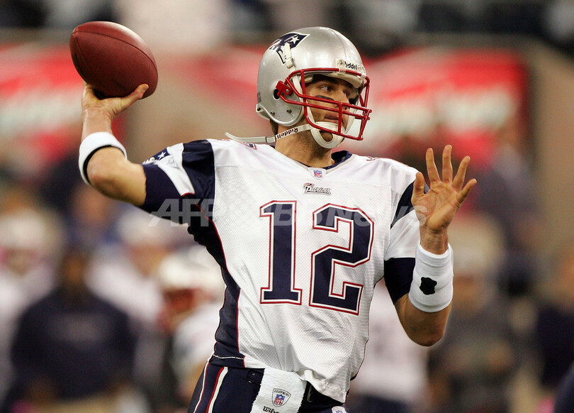 【インディアナポリス/米国 21日 AFP】NFL・プレーオフAFC決勝、インディアナポリス・コルツ(Indianapolis Colts)vsニューイングランド・ペイトリオッツ(New England Patriots)。ペイトリオッツのQBトム・ブレイディ(Tom Brady)は、1インターセプトを喫するも、1タッチダウンを含む34回中21本のパスを成功させ232ヤードを獲得した。しかし試合は、ペイトリオッツが第4Q残り1分でコルツに逆転を喫し34-38で敗れ、スーパーボウル進出を逃した。(c)AFP/Getty Images Andy Lyons