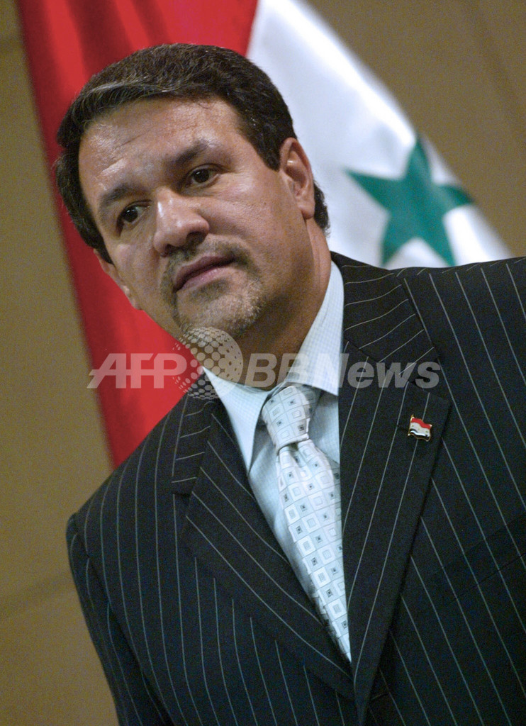 【バグダッド/イラク 23日 AFP】ダバグ(Ali al-Dabbagh)政府報道官は22日、拘束されているシーア派(Shiite)の指導者Sheikh Abdul Hadi al-Darraji師について、イラク政府は釈放を働きかけていると語った。Darraji師は前週サドルシティ(Sadr City)で、不法武装組織を指揮しているとして米軍によって身柄を拘束された。同氏はシーア派の強硬派指導者ムクタダ・サドル(Moqtada al-Sadr)師の側近とされている。写真は同日、バグダッドで会見に臨むダバグ報道官。(c)AFP/ALI YUSSEF