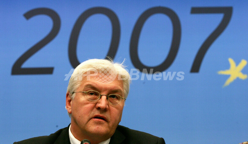 写真はEU本部で22日、EU外相理事会後に会見するフランクワルター・シュタインマイヤー(Frank Walter Steinmeier)独外相。(c)AFP/GERARD CERLES