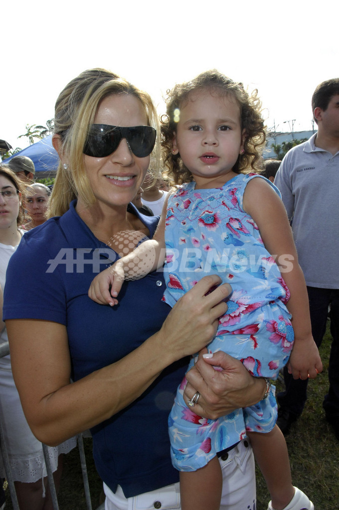 【マイアミ/米国 26日 AFP】チャリティ団体、ARODファミリー・ファウンデーション(AROD Family Foundation)とロナルド・マクドナルド・ハウス・チャリティーズ(Ronald McDonald House Charities)の共催イベント「Family Fun Day」が21日にMiami Seaquariumで開催され、ニューヨーク・ヤンキース(New York Yankees)のアレックス・ロドリゲス(Alex Rodriguez)夫妻が特別ゲストとして参加した。写真はカメラに向かいポーズをとるアレックス・ロドリゲス(左)とロナルド・マクドナルド(Ronald McDonald)。(c)AFP/Getty Images Gustavo Caballero