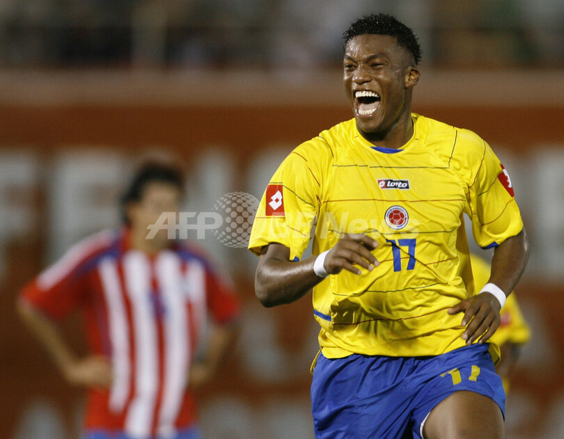 【アスンシオン/パラグアイ 23日 AFP】サッカー、南米ユース選手権(2007 South American Youth Championship)・決勝リーグ、パラグアイvsコロンビア。パラグアイのエドガル・ベニテス(Edgar Benitez)は、2ゴール(後半16分、29分)を挙げる活躍でチームの勝利に貢献した。試合はパラグアイが3-2で勝利し、決勝リーグ初白星を挙げた。写真は、後半16分に2-2となる同点ゴール決めて喜びを表すエドガル・ベニテス。(c)AFP/Miguel ROJO
