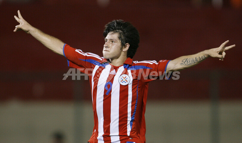 【アスンシオン/パラグアイ 23日 AFP】サッカー、南米ユース選手権(2007 South American Youth Championship)・決勝リーグ、パラグアイvsコロンビア。パラグアイのエドガル・ベニテス(Edgar Benitez)は、2ゴール(後半16分、29分)を挙げる活躍でチームの勝利に貢献した。試合はパラグアイが3-2で勝利し、決勝リーグ初白星を挙げた。写真は、後半16分に2-2となる同点ゴール決めて喜びを表すエドガル・ベニテス。(c)AFP/Miguel ROJO