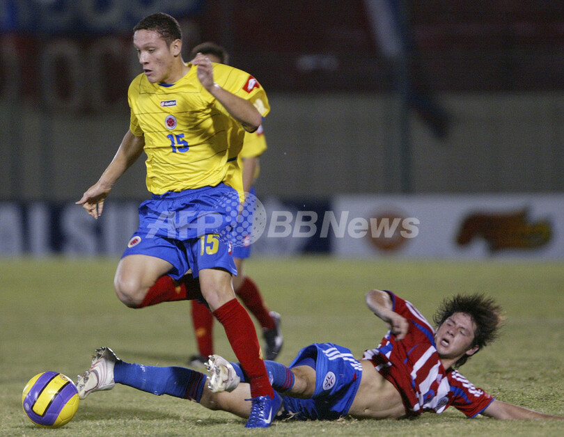 【アスンシオン/パラグアイ 23日 AFP】サッカー、南米ユース選手権(2007 South American Youth Championship)・決勝リーグ、パラグアイvsコロンビア。パラグアイのエドガル・ベニテス(Edgar Benitez)は、2ゴール(後半16分、29分)を挙げる活躍でチームの勝利に貢献した。試合はパラグアイが3-2で勝利し、決勝リーグ初白星を挙げた。写真は、後半16分に2-2となる同点ゴール決めて喜びを表すエドガル・ベニテス。(c)AFP/Miguel ROJO