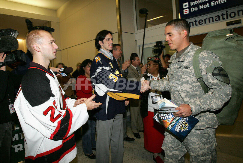 <06-07NHL>オールスター出場選手らが一時帰国した米軍兵士を出迎える - 米国