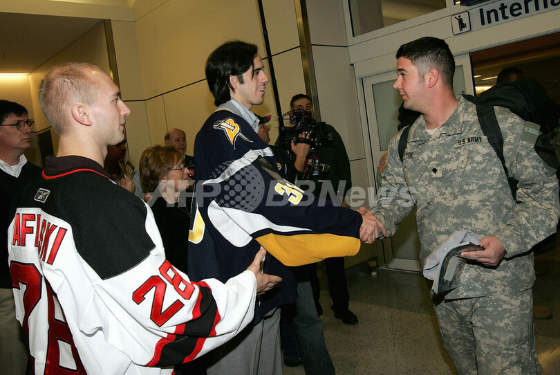 <06-07NHL>オールスター出場選手らが一時帰国した米軍兵士を出迎える - 米国