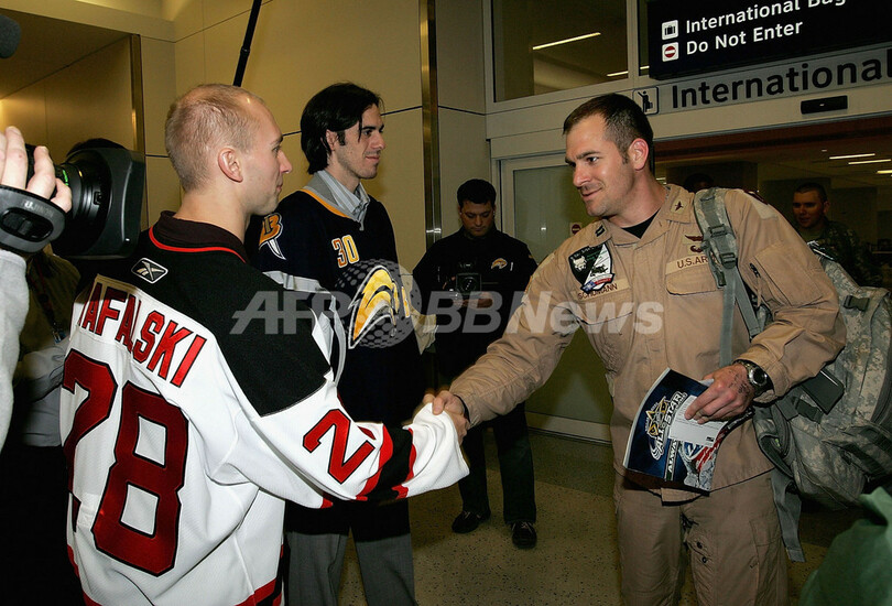 <06-07NHL>オールスター出場選手らが一時帰国した米軍兵士を出迎える - 米国
