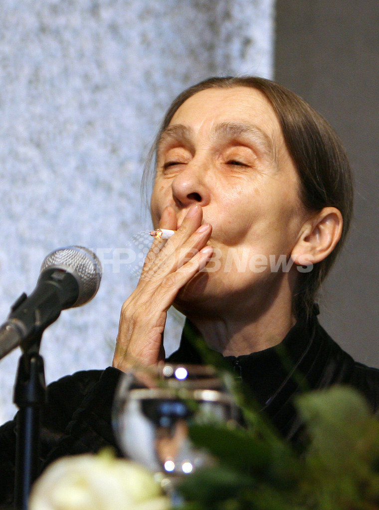 【ベルリン/ドイツ 25日 AFP】有名振付師、ピナ・バウシュ(Pina Bausch)による作品「Rough Cut」が24日から28日まで文化センター、Berliner Festspieleにて上演される。同作品はバウシュがダンス団、Tanztheater Wuppertalでソウルを訪れた際に着想したもので、バウシュの特徴である男女の触れ合いが、鮮やかなイメージと共に表現されている。写真は23日の会見に出席したピナ・バウシュ。(c)AFP/BARBARA SAX