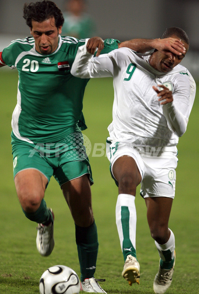 【アブダビ/UAE 24日 AFP】サッカー、ガルフカップ2007(Gulf Cup 2007)・グループB、サウジアラビアvsイラク。サウジアラビアのヤシル・アル・カフタニ(Yasser al-Kahtani)は、前半12分に先制ゴールを決め。サポーターに投げキッスを贈る。試合はサウジアラビアが1-0でイラクを降し、通算成績2勝1分けで準決勝進出を決めた。(c)AFP/RABIH MOGHRABI