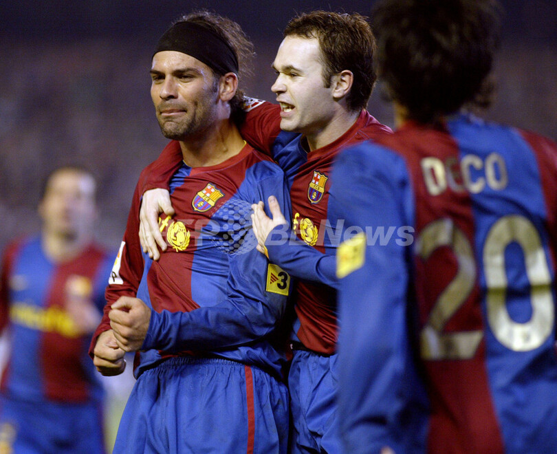 【セビリア/スペイン 24日 AFP】サッカー、スペイン・リーガエスパニョーラ1部・第15節延期分、ベティス(Betis)vsバルセロナ(Barcelona)。試合は前半37分にホベルチ(Robert)のゴールでベティスが先制するも、後半16分にバルセロナのラファエル・マルケス(Rafael Marquez)が同点ゴールを決め1-1の引き分け終わり、バルセロナは勝点を39に伸ばしリーグ単独首位に立った。写真は、ベティスのメジ(Melli)をかわすバルセロナのロナウジーニョ(Ronaldinho、右)。(c)AFP/CRISTINA QUICLER