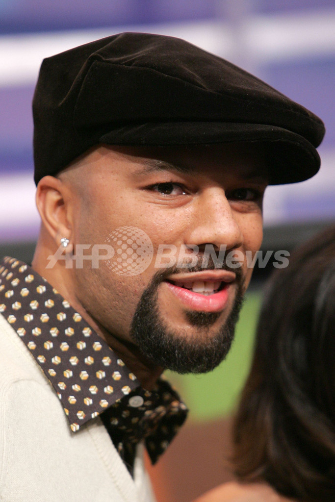 写真はカメラに向かってポーズをとるコモン。(c)AFP/Getty Images Bryan Bedder
